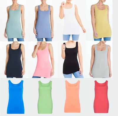 Long Line Vest Top Ladies Girls Cami Dress Stretch Wide Strap 8 20 Uk Ebay