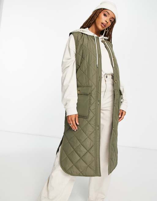 Only Diamond Quilted Longline Vest In Khaki Asos